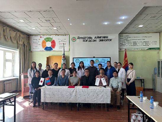 加えて,今年度も郊外の医療機関の視察へ行きました。首都ウランバートルから片道200kmほど離れたドンドゴビ県マンダルゴビ市を訪れ,地域の総合病院を視察しました。当院では2023年に新たに入院病棟が完成しましたが,患者の入院治療をサポートできる精神科専門の看護師の人材難が現状の課題とのことでした。この課題について,今後、国立精神医療センターが,そのような人材育成を推進する旨が確認され,病院とセンターの間で契約が取り交わされる場に,我々も立ち会わせていただきました。